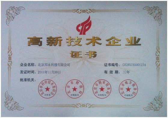 近日,經(jīng)國家科技部、國家稅務(wù)局等相關(guān)部門對北京邦永科技有限公司各類資質(zhì)進(jìn)行的認(rèn)真考察與嚴(yán)格評審,北京邦永科技有限公司成功通過了“高新技術(shù)企業(yè)”認(rèn)證,并獲得了由北京市科委、北京市財(cái)政局、北京市國家稅務(wù)局和北京地稅局聯(lián)合頒發(fā)的“高新技術(shù)企業(yè)”證書。