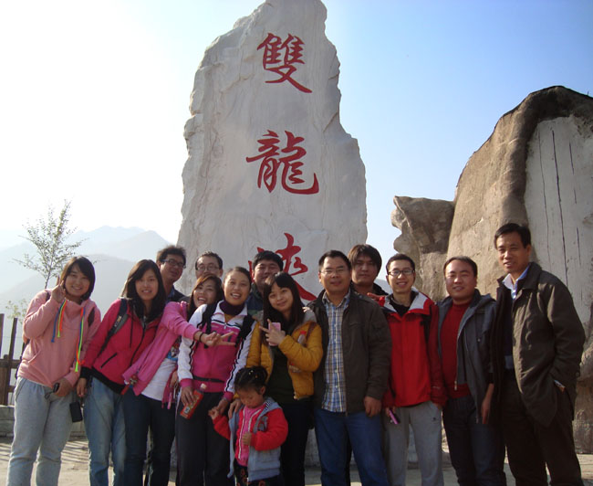 2012年10月27日清晨,公司各部門(mén)員工乘坐專(zhuān)車(chē)前往京西南門(mén)頭溝區(qū),開(kāi)始了為期兩天的旅程。在同事兒們歡聲笑語(yǔ)中,大家終于來(lái)到了本次活動(dòng)的第一站---雙龍峽。雙龍峽是門(mén)頭溝的著名的自然風(fēng)景區(qū)、被喻為”小九寨溝”。在這里,大家乘坐獨(dú)特的森林小火車(chē),穿梭于幽靜峽谷間,體驗(yàn)遠(yuǎn)離喧囂都市的美景,見(jiàn)證大自然的鬼斧神工。大概行駛了20分鐘,森林小火車(chē)將大家?guī)У搅讼膳疄炒a頭。在這里,大家穿上救生衣,駕駛著小船,體驗(yàn)在百條瀑布匯聚的潭水中進(jìn)行劃船的樂(lè)趣。隨后,大家來(lái)到了雙龍峽第一瀑布,在這里,大家游覽了八仙觀洞、三疊泉、、雙龍戲龜、五連環(huán)瀑等多個(gè)天河、水潭。歡聲笑語(yǔ)中,大家體驗(yàn)著大自然的美景,放松了身心,融入了自然。