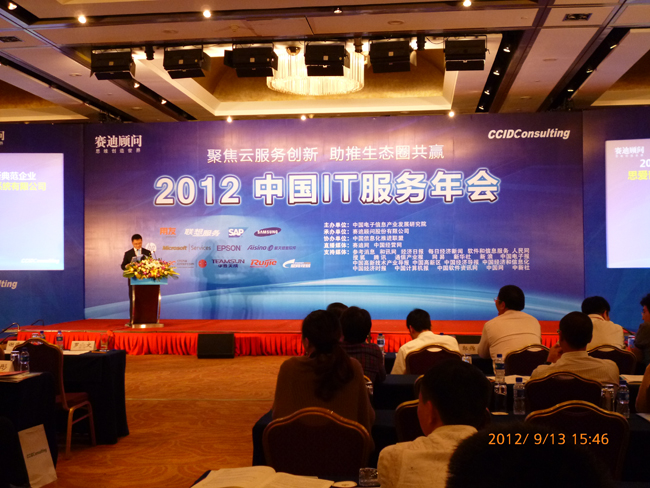 2012年09月13日,由中國電子信息產業(yè)發(fā)展研究院主辦,賽迪顧問股份有限公司承辦的2012中國IT服務年會在北京新世紀日航酒店隆重舉行。本次大會以“聚焦云服務創(chuàng)新、助推生態(tài)圈共贏”為主題,從云計算引發(fā)的服務創(chuàng)新為切入點,從技術、商業(yè)模式、IT基礎設施等方面深入討論新一代信息技術給IT服務業(yè)帶來的影響。共有政府主管官員、IT專家及國內外知名IT企業(yè)首腦、行業(yè)與企業(yè)IT用戶、IT代表和國內外知名媒體代表等400余人蒞臨出席大會。