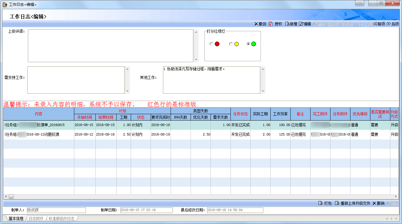 2)研發(fā)部通過員工任務(wù)計(jì)劃管理模塊調(diào)配各類資源,組建項(xiàng)目小組。通過項(xiàng)目計(jì)劃、研發(fā)部季、月、周計(jì)劃、工作日志等模塊對各研發(fā)項(xiàng)目的具體進(jìn)度計(jì)劃進(jìn)行監(jiān)督審核控制協(xié)調(diào)并制定項(xiàng)目目標(biāo)完成時(shí)間。各項(xiàng)目經(jīng)理根據(jù)需求文檔進(jìn)行有效資源分配,做出較精準(zhǔn)的計(jì)劃時(shí)間、資源使用量,在公司角度從源頭對項(xiàng)目的研發(fā)進(jìn)度、資源利用進(jìn)行控制;制定各項(xiàng)目詳細(xì)的計(jì)劃工期,資源使用計(jì)劃,每日工作日志填報(bào)實(shí)際進(jìn)度。通過填寫相關(guān)項(xiàng)目研發(fā)業(yè)務(wù)數(shù)據(jù),做到事前控制。