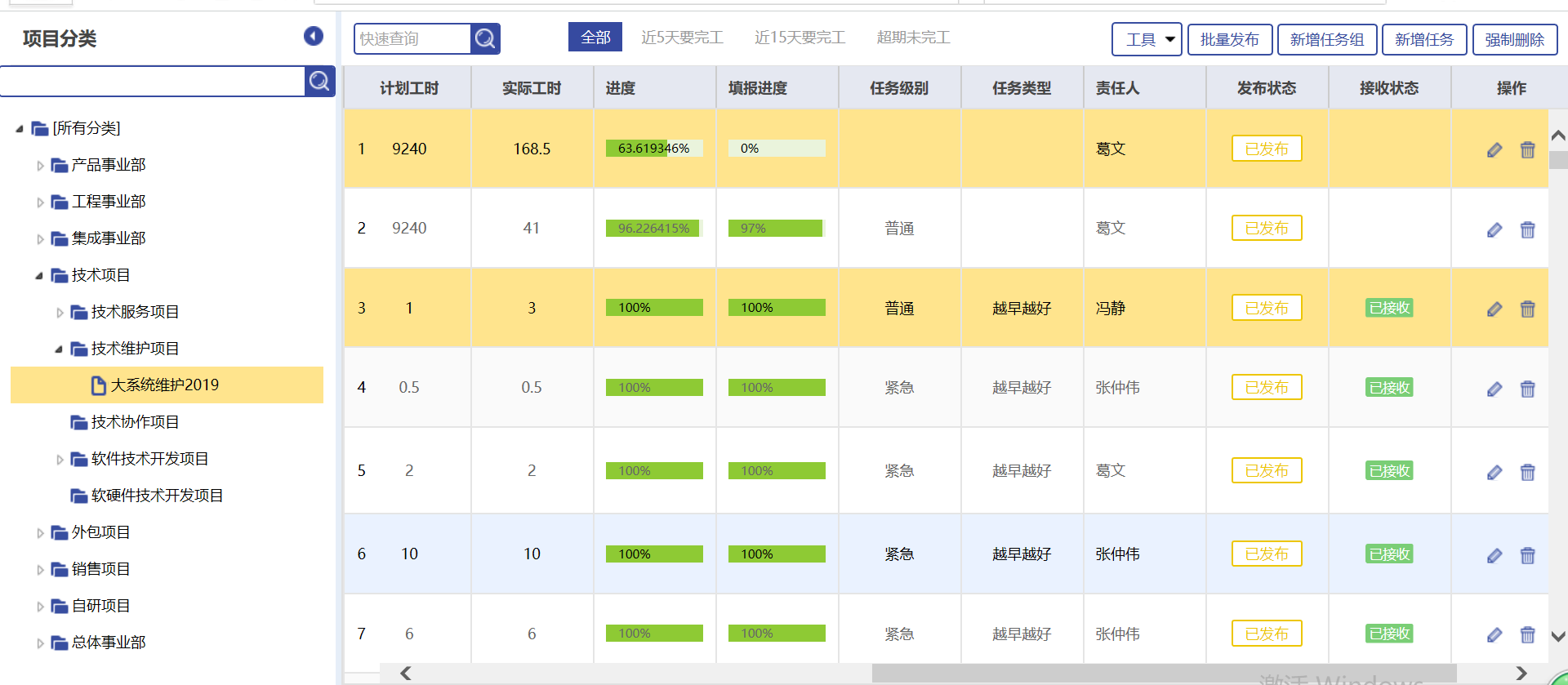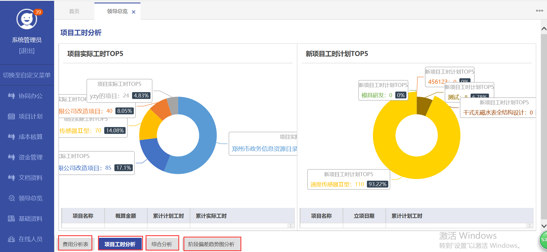 ? 按項目統(tǒng)計計劃完成工時和完成率;