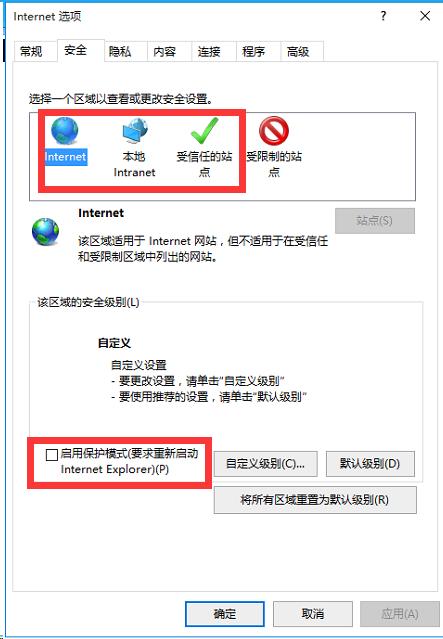 絳旓細鍘熷洜鏄IE鐨勫惎鐢ㄤ繚鎶ゆā寮忛樆姝簡錛岄渶瑕佷笉鍚敤淇濇姢妯″紡鍜屾妸緗戞鍔犺澆鍒板彈淇$敤緗戠珯