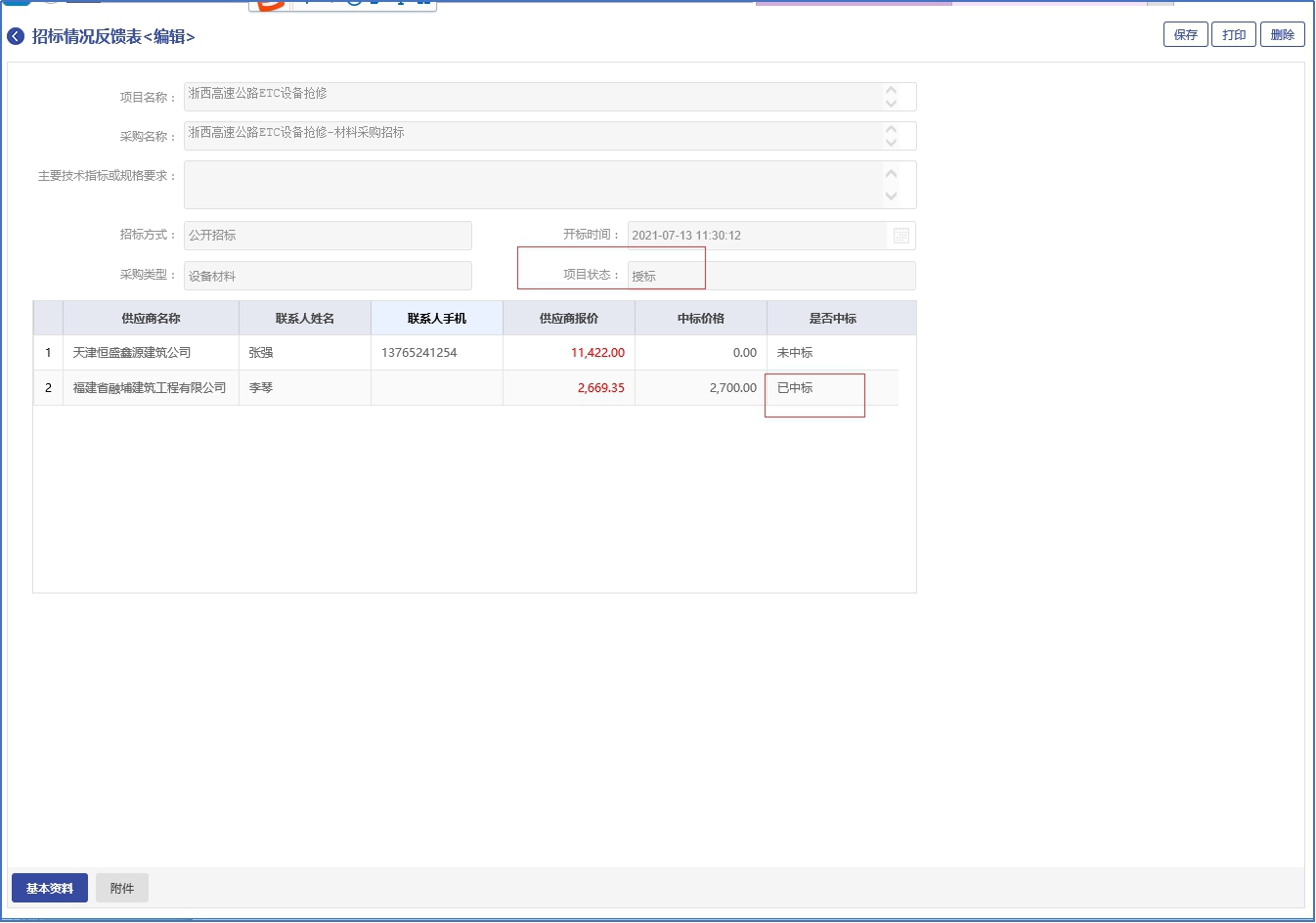 鎷涙爣鏂囦歡瀹℃壒鍙戝竷鍚庯紝璁″垝鍚堢害閮ㄥ湪姝ゆ煡鐪嬮渶鎷涙爣鐨勯噰璐」鍙婂悇渚涘簲鍟嗘姤浠鳳紝騫舵牴鎹緵搴斿晢紜瀹℃壒濉啓涓爣鍗曚綅銆傚彲絀塊忓埌紓嬪晢鎶ヤ環(huán)鐣岄潰銆傜敳鏂瑰湪姝ゆ煡鐪嬫嫑鏍囩殑鐩稿叧鎯呭喌錛屾牴鎹紑鏍囨椂闂村強渚涘簲鍟嗘槸鍚︿腑鏍囨洿鏂版嫑鏍囬」鐨勭姸鎬侊紝 騫舵牴鎹紑鏍囨椂闂存帶鍒朵緵搴斿晢鎶ヤ環(huán)鏄劇ず鏁板艱繕鏄?鍙楓?/p>
