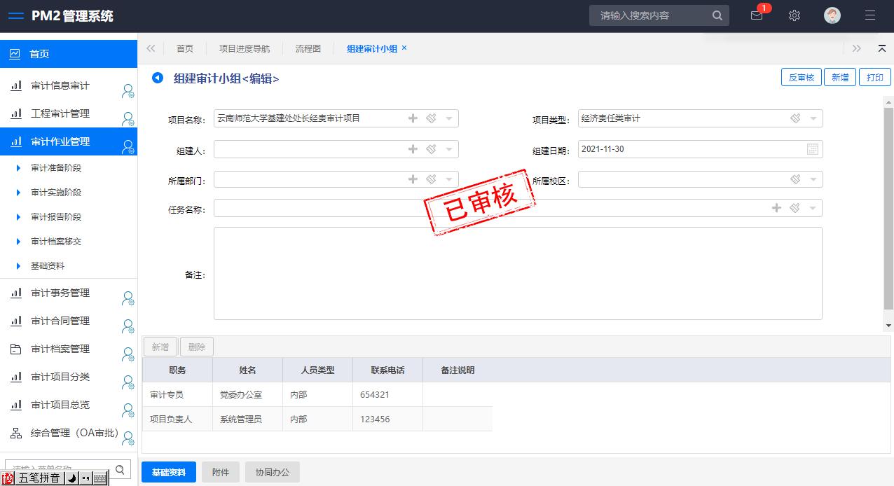 2021q?2?2日在云南师范大学审计处召开审计信息化管理系l验收会(x)议,云师大审计处全体人员和校外三名专家组成的验收组Q对北京邦永U技有限公司的“邦永PM2审计软gpȝV4.0”进行品验Ӟ专家寚w永PM2审计信息化管理系l基本功能,一致给予:(x)“同意验收”的意见通过验收?/p>