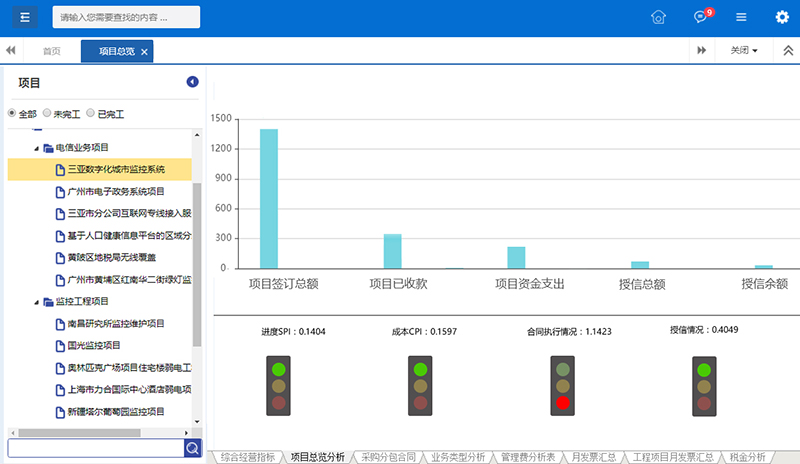 11、全方位的項(xiàng)目總攬報(bào)告 項(xiàng)目總攬報(bào)告涵蓋項(xiàng)目預(yù)算執(zhí)行情況、工程進(jìn)度情況、資金流動(dòng)狀況、合同執(zhí)行情況、物資設(shè)備采購(gòu)執(zhí)行分析等多個(gè)業(yè)務(wù)角度,通過(guò)與項(xiàng)目計(jì)劃的對(duì)比,發(fā)現(xiàn)項(xiàng)目偏差,為項(xiàng)目的跟蹤、評(píng)估、決策奠定基礎(chǔ)。