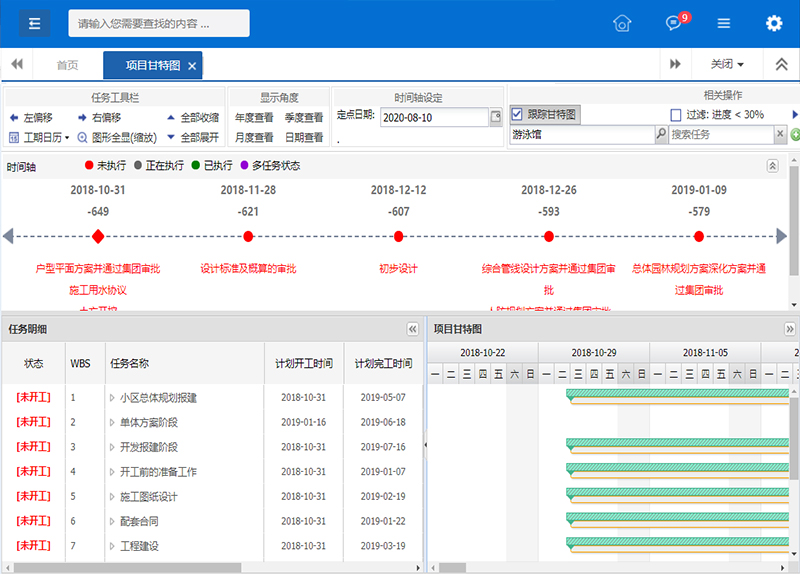 9、智能預(yù)警機(jī)制 合同變更、簽證預(yù)警、成本目標(biāo)超支預(yù)警、超合同付款預(yù)警、當(dāng)前工作提醒、工程進(jìn)度滯后預(yù)警等多種預(yù)警機(jī)制,主動(dòng)為您把握關(guān)鍵業(yè)務(wù)環(huán)節(jié),將被動(dòng)工作演繹為主動(dòng)。 10、多項(xiàng)目、多層次進(jìn)度計(jì)劃 支持外部項(xiàng)目,實(shí)現(xiàn)項(xiàng)目/子項(xiàng)目無(wú)限分解;支持任務(wù)分組。甘特圖、網(wǎng)絡(luò)圖(單代號(hào)、雙代號(hào))、工作日歷、邏輯圖等多種工具從不同側(cè)面展現(xiàn)項(xiàng)目進(jìn)度與計(jì)劃,關(guān)鍵路徑自動(dòng)計(jì)算;用戶自定義圖形顯示方式。項(xiàng)目模版形成企業(yè)的標(biāo)準(zhǔn)項(xiàng)目流程。