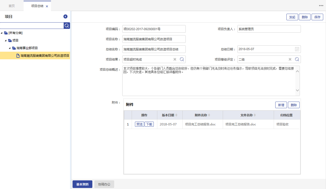 要求項(xiàng)目進(jìn)度填報(bào)的同時(shí),必須提交成果類(lèi)文件,并支持所有成果文檔的分類(lèi)歸檔及后期查閱。