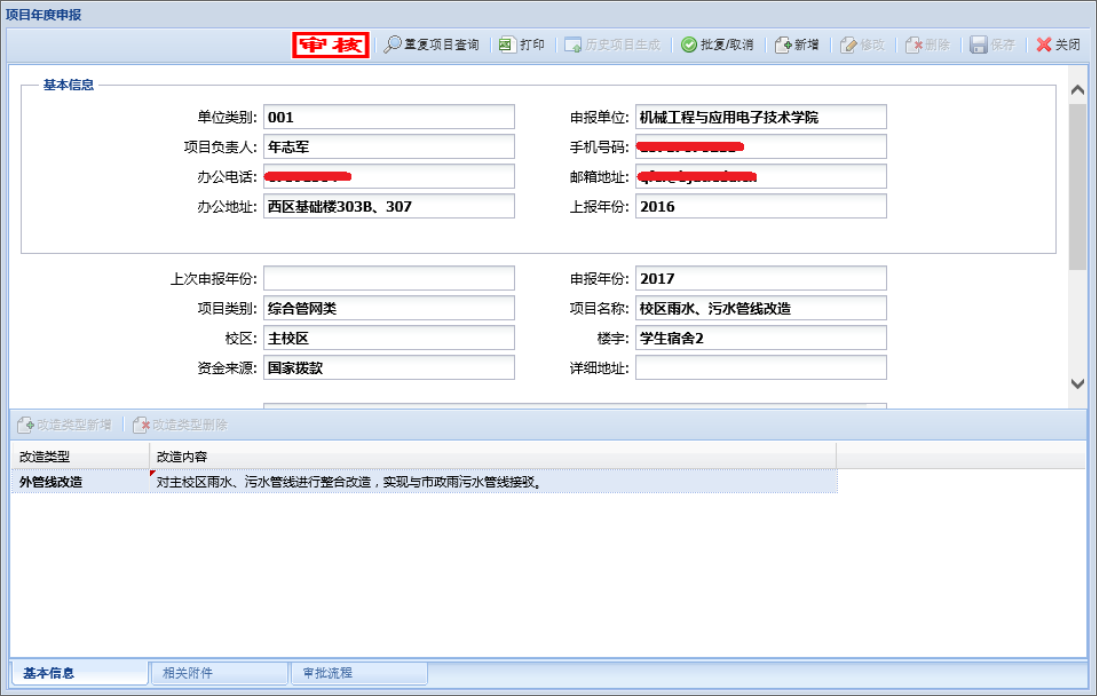 • 項(xiàng)目立項(xiàng)涉及的主體不同;(xiàng)目不僅涉及到高校本身,還與國家相關(guān)的規(guī)劃、環(huán)境、文保、建設(shè)等相關(guān)部門有關(guān)。而修繕工程,則相對簡單得多,是以高校為主體,涉及到施工單位即可。
