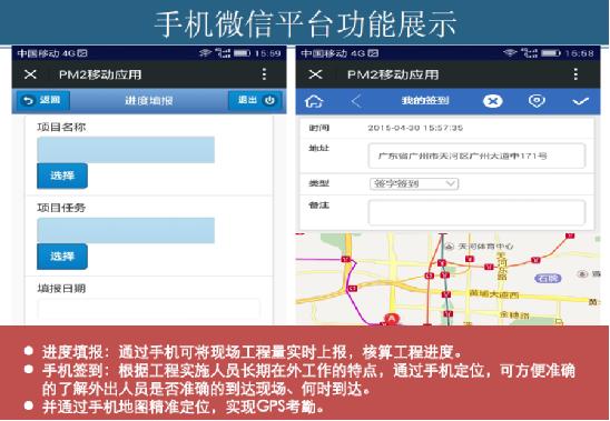 3、手機(jī)移動(dòng)應(yīng)用:實(shí)現(xiàn)員工移動(dòng)打卡、方便出差人員簽到;同時(shí),讓長(zhǎng)期在外出差的公司領(lǐng)導(dǎo)和高管通過(guò)手機(jī)微信實(shí)時(shí)了解公司業(yè)務(wù),對(duì)公司正常業(yè)務(wù)進(jìn)行審批和批復(fù),充分發(fā)揮移動(dòng)辦公的高效性。