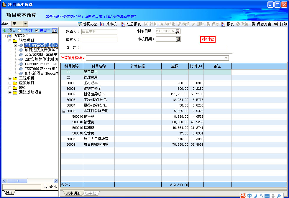 (4)實(shí)現(xiàn)對(duì)項(xiàng)目年度開發(fā)成本、成本預(yù)算、動(dòng)態(tài)成本的管理;