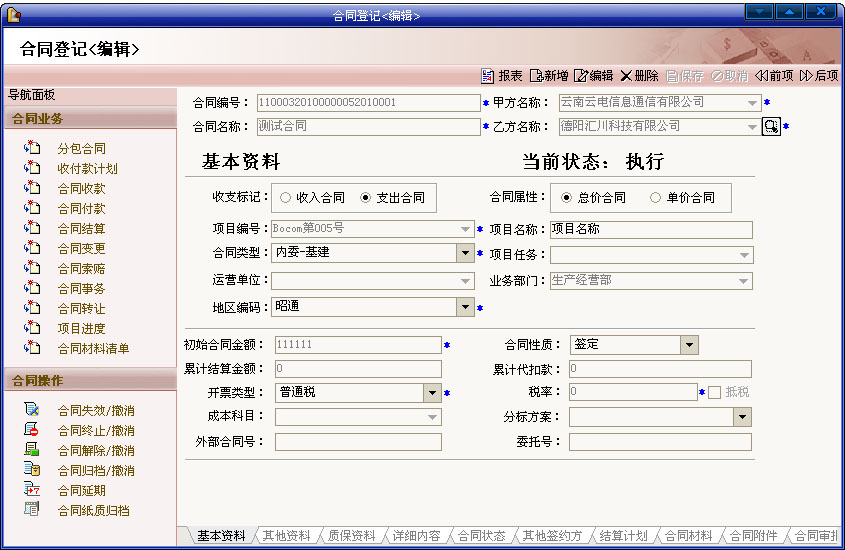 (5)實(shí)現(xiàn)對(duì)合同簽訂、變更、簽證、款項(xiàng)撥付的執(zhí)行管理;