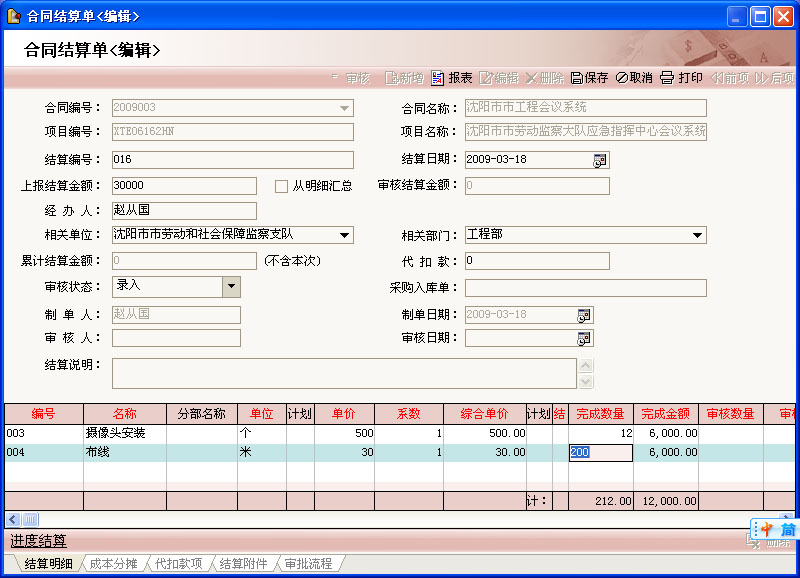 過(guò)程控制:進(jìn)度上報(bào),合同的簽訂、撥付、變更、簽證;