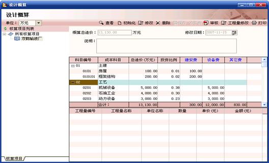 初步投資管理通過經(jīng)濟(jì)技術(shù)指標(biāo)、經(jīng)驗(yàn)公式、歷史項(xiàng)目數(shù)據(jù)、項(xiàng)目費(fèi)用構(gòu)成計(jì)算出項(xiàng)目的初步投資額,一般此階段允許的誤差為-10%~~+25%。隨著項(xiàng)目的長(zhǎng)期積累,可以形成豐富的模版。對(duì)于類似項(xiàng)目通過模版,調(diào)整經(jīng)濟(jì)技術(shù)指標(biāo),及各種參數(shù),即可快速完整的生成項(xiàng)目投資估算。