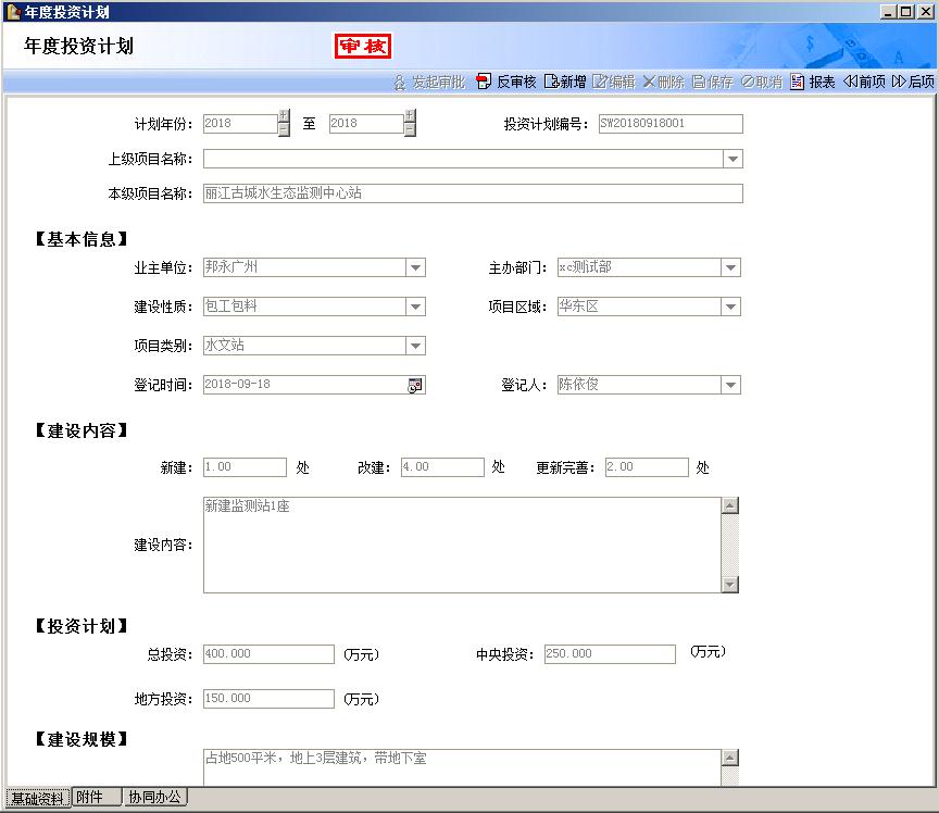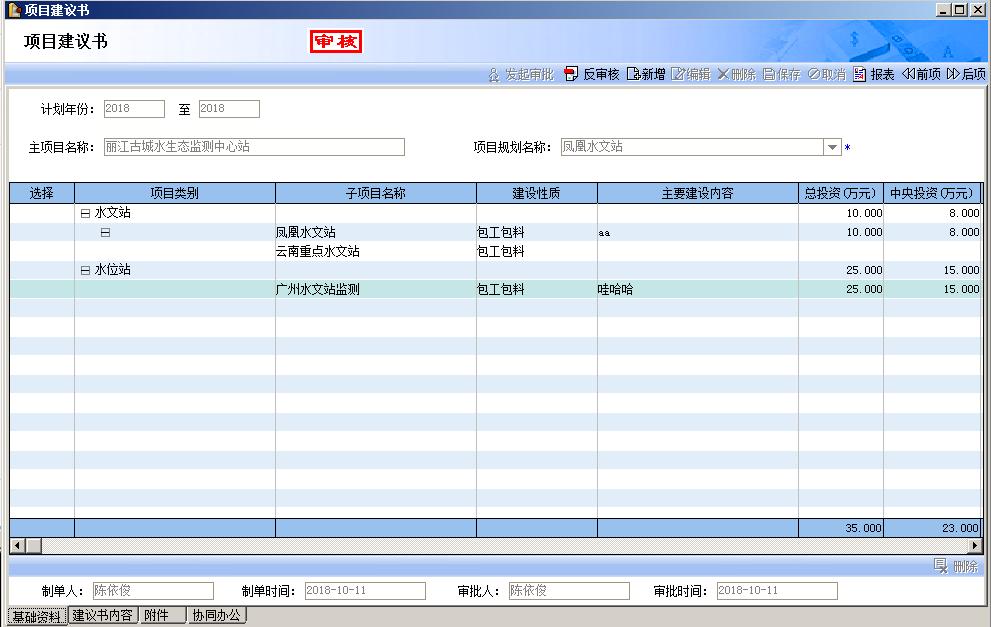5、通過新開發(fā)的個性化前期管理將項目規(guī)劃、項目建議書、可行性研究報告、初步設(shè)計報告(實施方案),項目審核、項目報批等等過程規(guī)范化、體系化,提升了云南水文局項目辦的整體形象和管理水平。