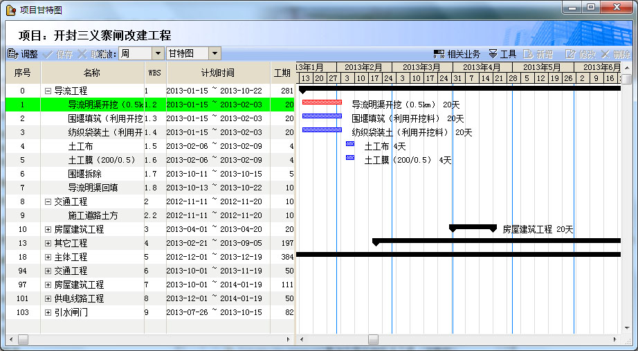 通過PM2中的項目計劃子系統(tǒng)對項目的工期進行整體計劃,并由施工單位每周定期填報,由監(jiān)理公司進行一次審核,建設(shè)局相干責任人進行二次審核。項目計劃,用甘特圖方式取代了傳統(tǒng)的紙筆畫圖,隨時調(diào)閱項目建設(shè)進度。并且可以在線一鍵轉(zhuǎn)為多種顯示模式,如網(wǎng)絡(luò)圖,雙代號圖,工作日歷,邏輯圖。