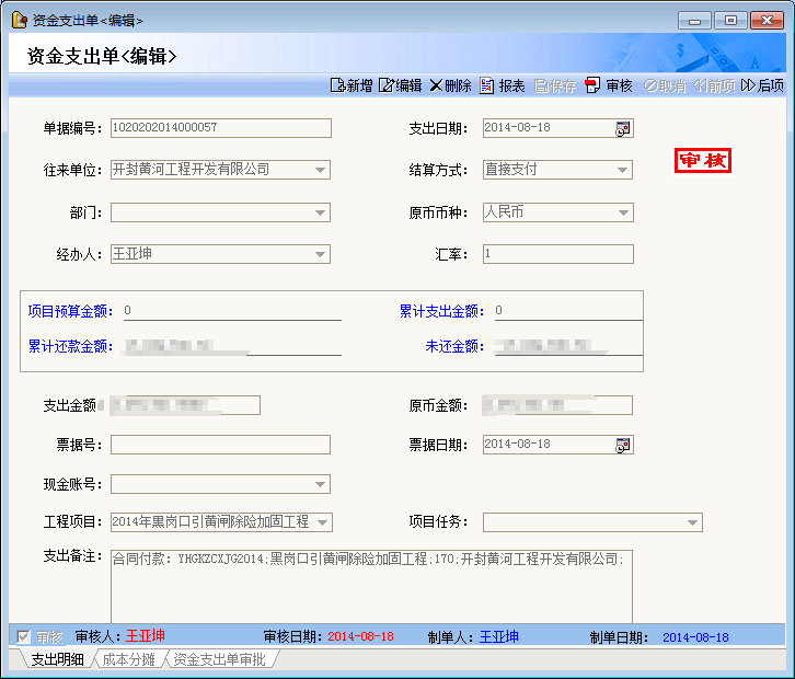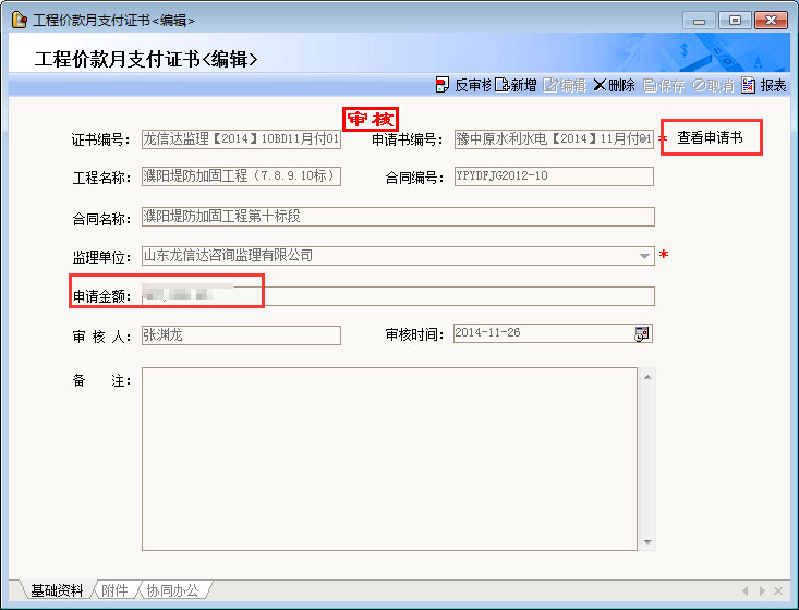 工程價款月支付申請管理,支持預付款自動扣回。