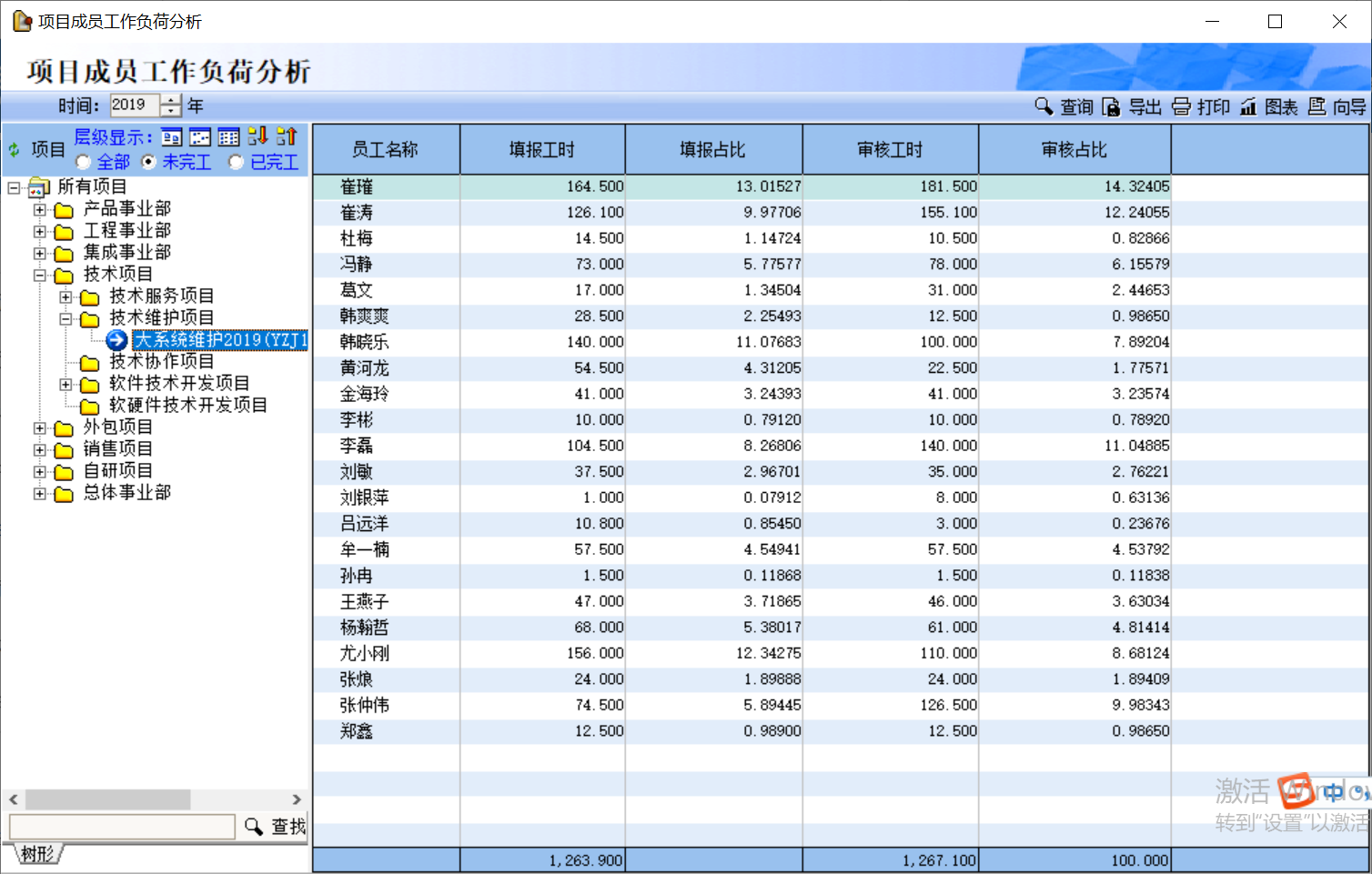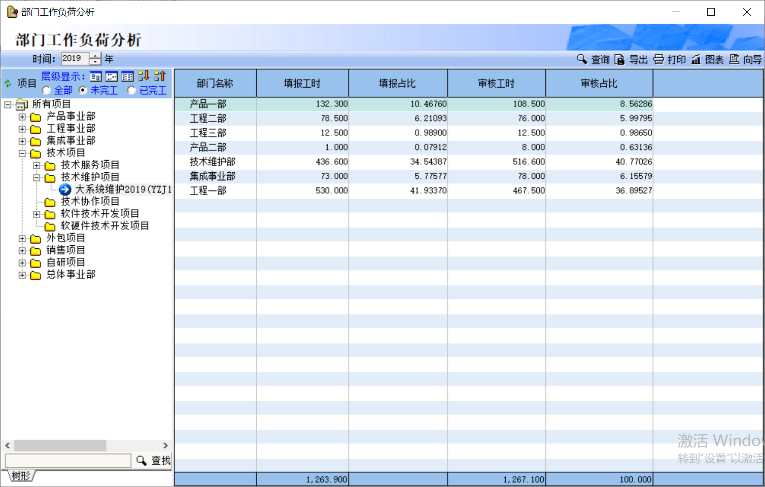 ? 按項目統(tǒng)計計劃完成工時和完成率;