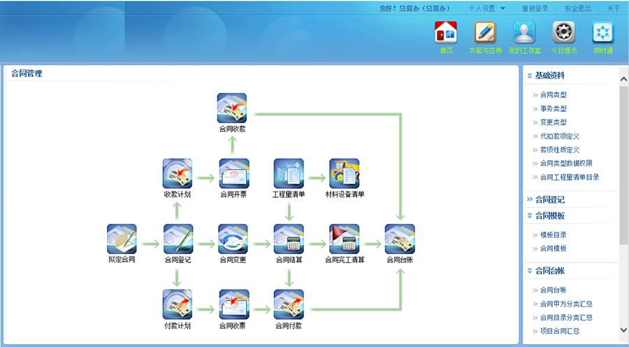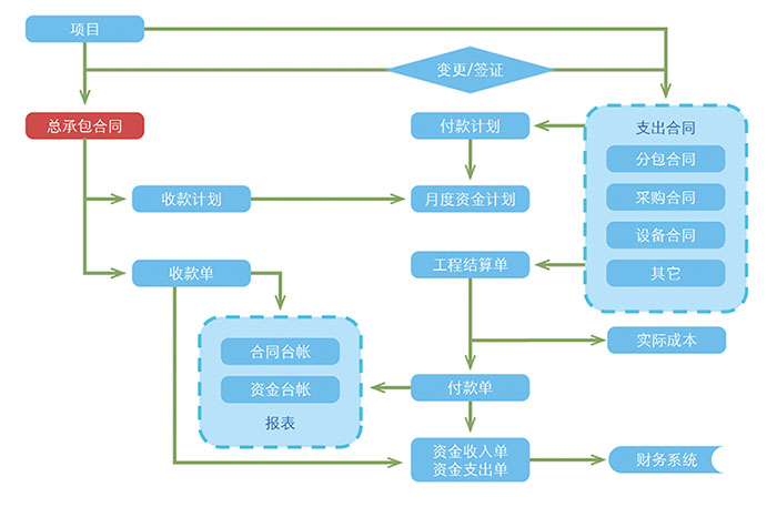 合同及合同管理是企業(yè)經(jīng)營成敗的關(guān)鍵因素,尤其是在工程項目型企業(yè),合同管理更是企業(yè)管理中的重中之重,直接關(guān)系到項目的成本管控和企業(yè)層面上的資金監(jiān)管。邦永公司憑借多年在工程項目企業(yè)的潛心專研以及豐富的軟件開發(fā)、實施經(jīng)驗,研發(fā)了貼合總承包型企業(yè)管理要求的合同管理軟件。