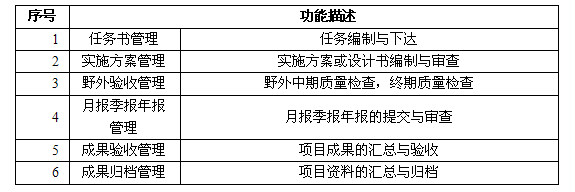 目立项审批通过后,正式q入目生命周期理Q即d书编制与下达Q实施方案编制与审查Q野外中期质量检查预验收Q月报、季报、年报的提交与审查,L果验Ӟ目资料的汇交与归{。项目进度管理功能需覆盖上述功能模块?/p>