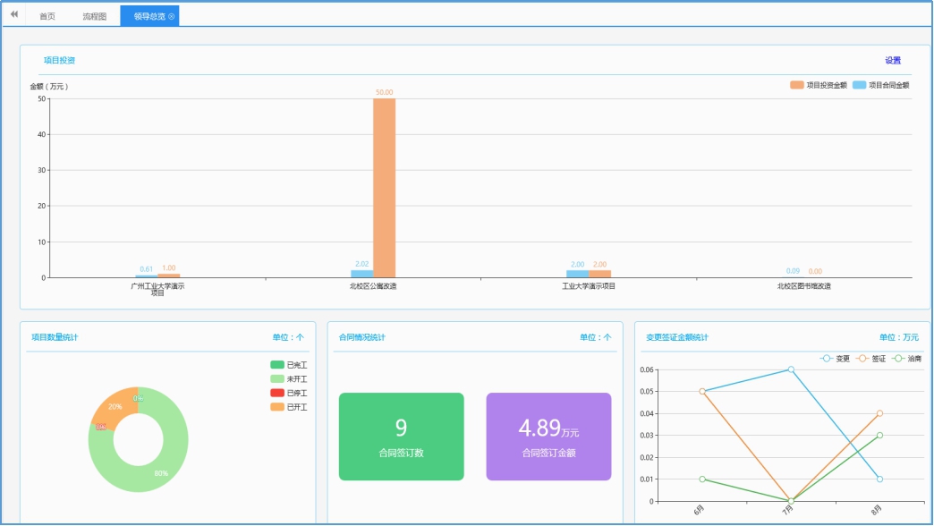 閫氳繃鍚勭鏁版嵁灞曠幇褰㈠紡錛屽彲娓呮櫚鐪嬪埌欏圭洰鐨勫綋鍓嶇姸鎬侊紝鑺傜偣錛岃垂鐢ㄦ敮浠樼瓑鎯呭喌銆備究浜庨瀵煎眰闈㈠揩閫熸煡闃咃紝涓哄悇縐嶅喅絳栨彁渚涚浉鍏蟲敮鎸併?/p>