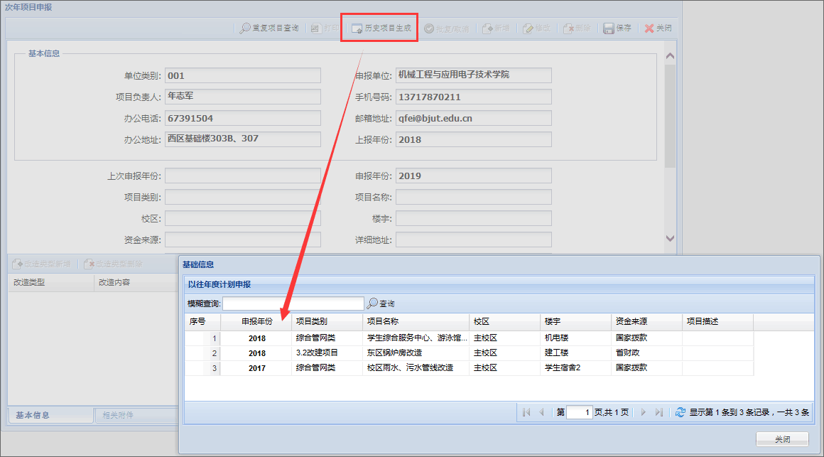 歷史申報(bào)項(xiàng)目生成新申報(bào)項(xiàng)目