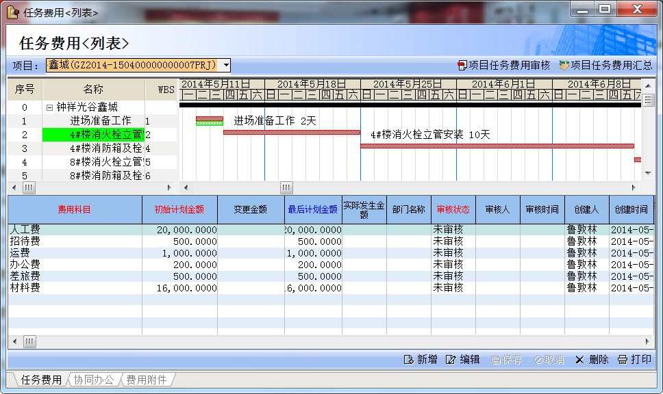 (2) 所有項目必須在系統(tǒng)內(nèi)填寫項目計劃、費用計劃、進(jìn)度計劃、費用報銷等核心功能菜單。通過PM2系統(tǒng)實現(xiàn)項目的全過程記錄,便于后期查詢、分析項目實施情況。以下截圖以“鐘祥光谷鑫城”為例。