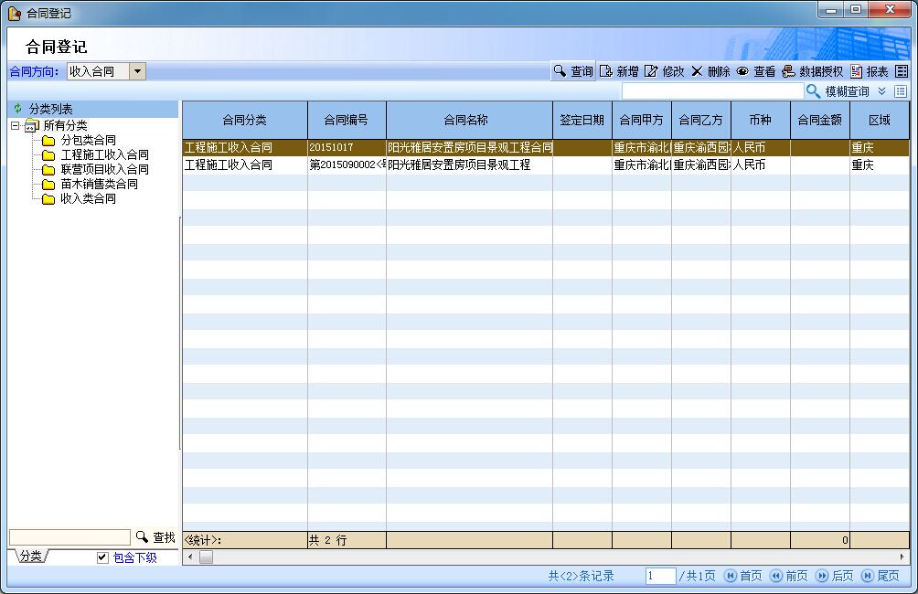 - 將收入、支出合同統(tǒng)一進行管理,輕松實現(xiàn)工程合同、采購合同、分包合同、苗木銷售合同等分類管理,所有合同匯總顯示,管理者可隨時了解合同的基本信息和狀態(tài),并可方便的查閱和編輯合同;合同登記、合同收/付款、合同變更、合同結算等功能實現(xiàn)合同業(yè)務的全面管理;合同報表從不同的角度和層次,動態(tài)反映、分析合同的執(zhí)行情況。