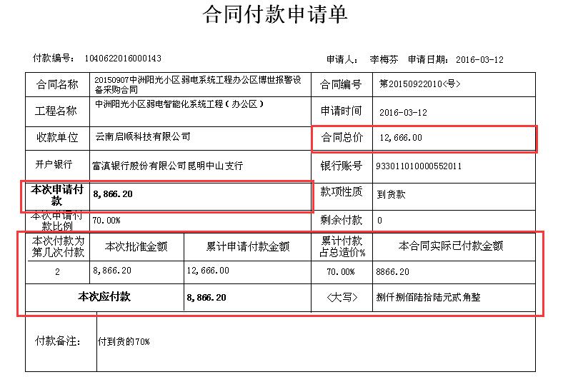 5)采購合同付款申請:增加“累計(jì)申請付款金額”和“本合同實(shí)際已付款金額”等字段,使該表更具實(shí)際意義。