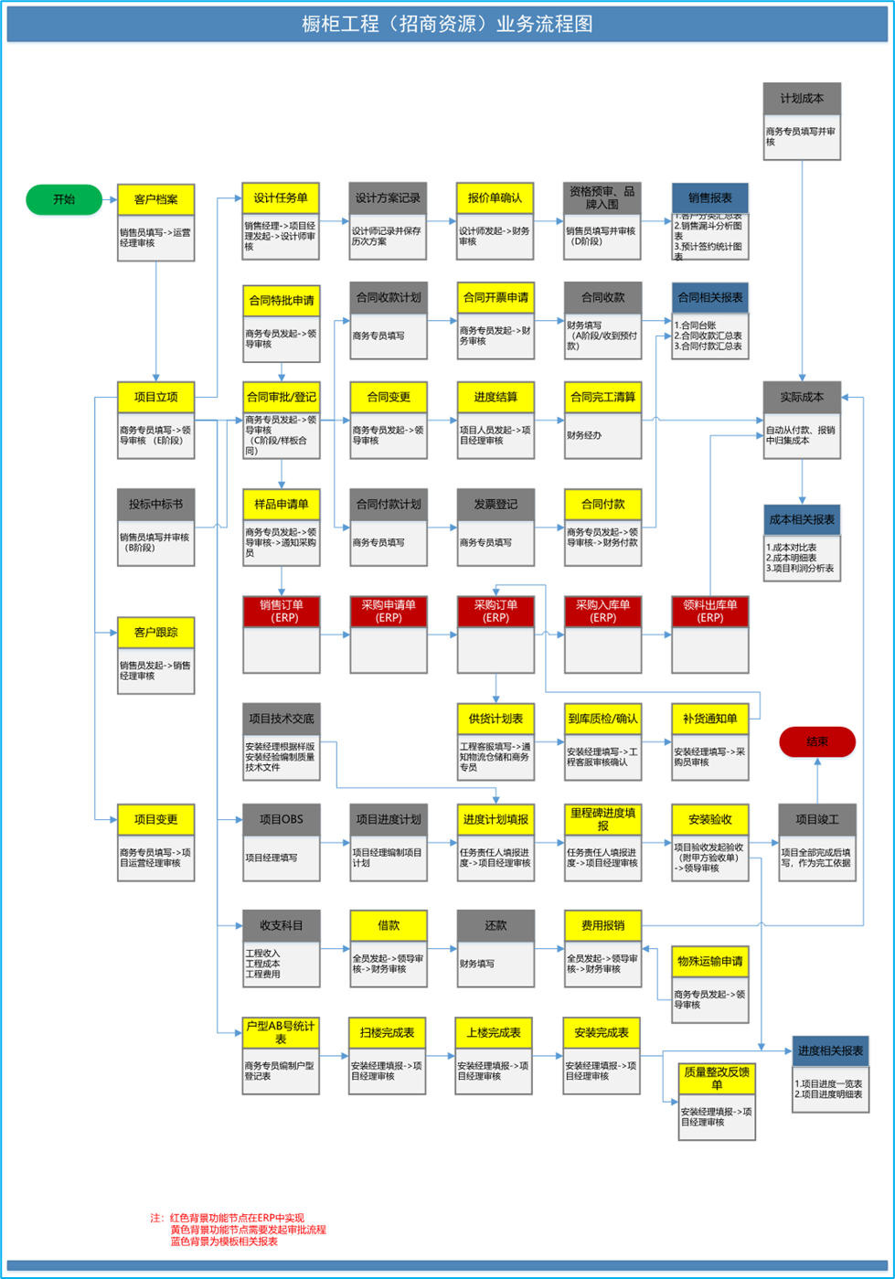 各項目部的各個職能部門的人員,在自己的意識中都知道項目工作的基本流程,但作為公司的主營業(yè)務(wù),建議應(yīng)形成標(biāo)準(zhǔn)化的業(yè)務(wù)流程,并將其內(nèi)容制度化,為以后的具體項目工作提供指導(dǎo)。