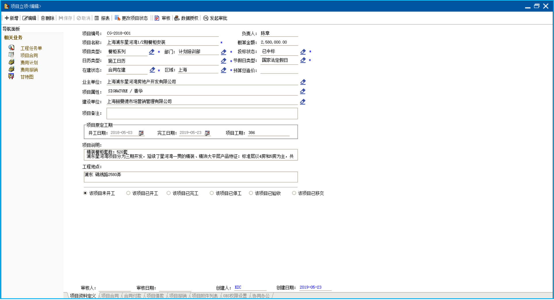 針對公司數(shù)量巨大的櫥柜項目和門店項目,實現(xiàn)每一個項目銷售,進度,合同,成本,資金動態(tài)流等縱向的管理,從設(shè)計、建設(shè)、竣工各階段全方位實行進度、費用管控。