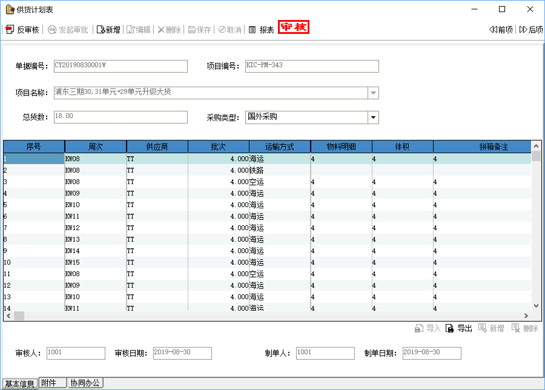 根據(jù)合同要求,設(shè)定供貨計劃,過程中通過ERP實現(xiàn)材料申請,采購等環(huán)境,系統(tǒng)通過接口無縫完成,最后通過到貨質(zhì)檢和補貨通知完成現(xiàn)場材料接收的過程。