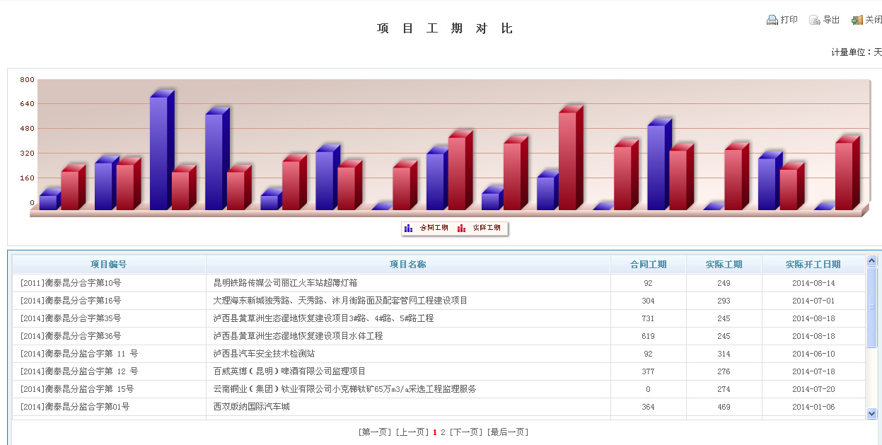 如:項目工期對比圖、項目中標情況匯總分析圖、項目運行情況分析圖,以及公司損益一覽表分析圖等等,實現(xiàn)管理層決策可視化,大大提升了企業(yè)的管理水平。如圖: