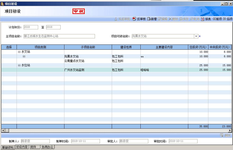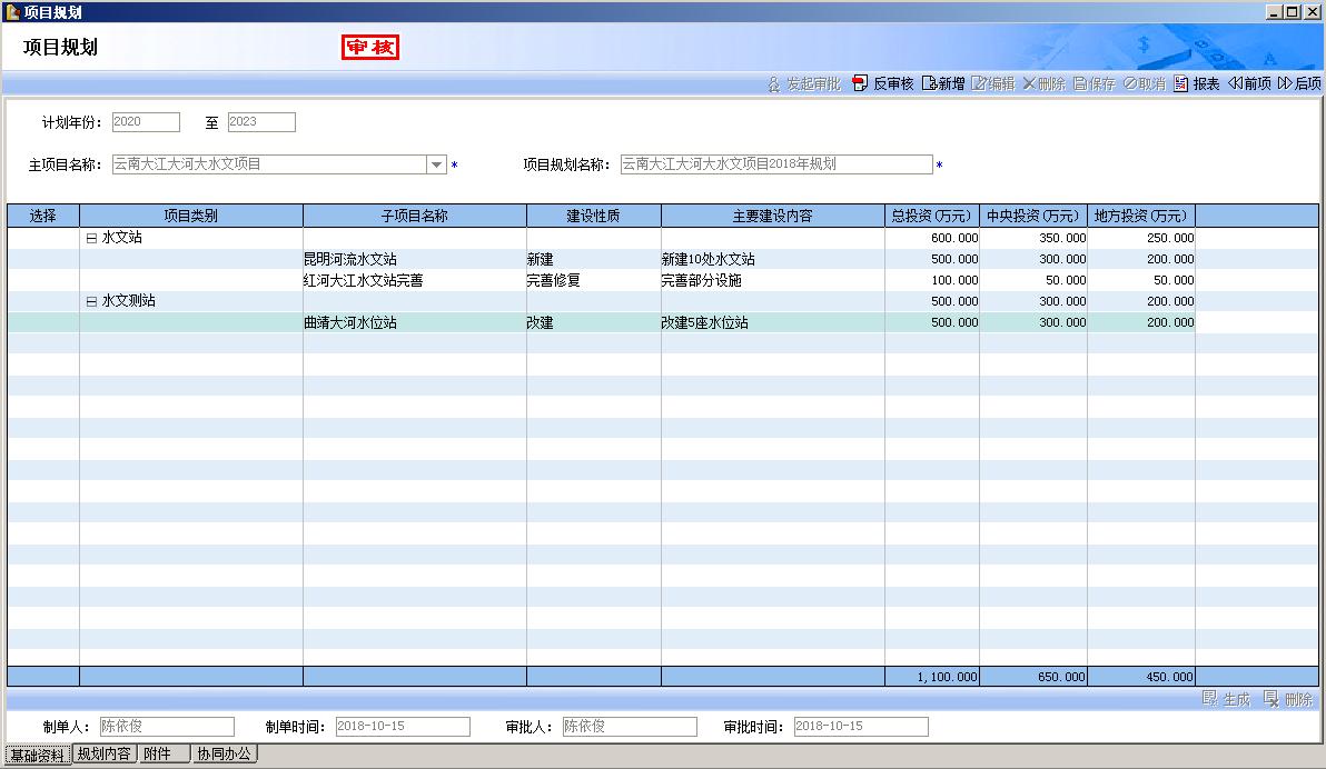 5、通過新開發(fā)的個性化前期管理將項目規(guī)劃、項目建議書、可行性研究報告、初步設(shè)計報告(實施方案),項目審核、項目報批等等過程規(guī)范化、體系化,提升了云南水文局項目辦的整體形象和管理水平。