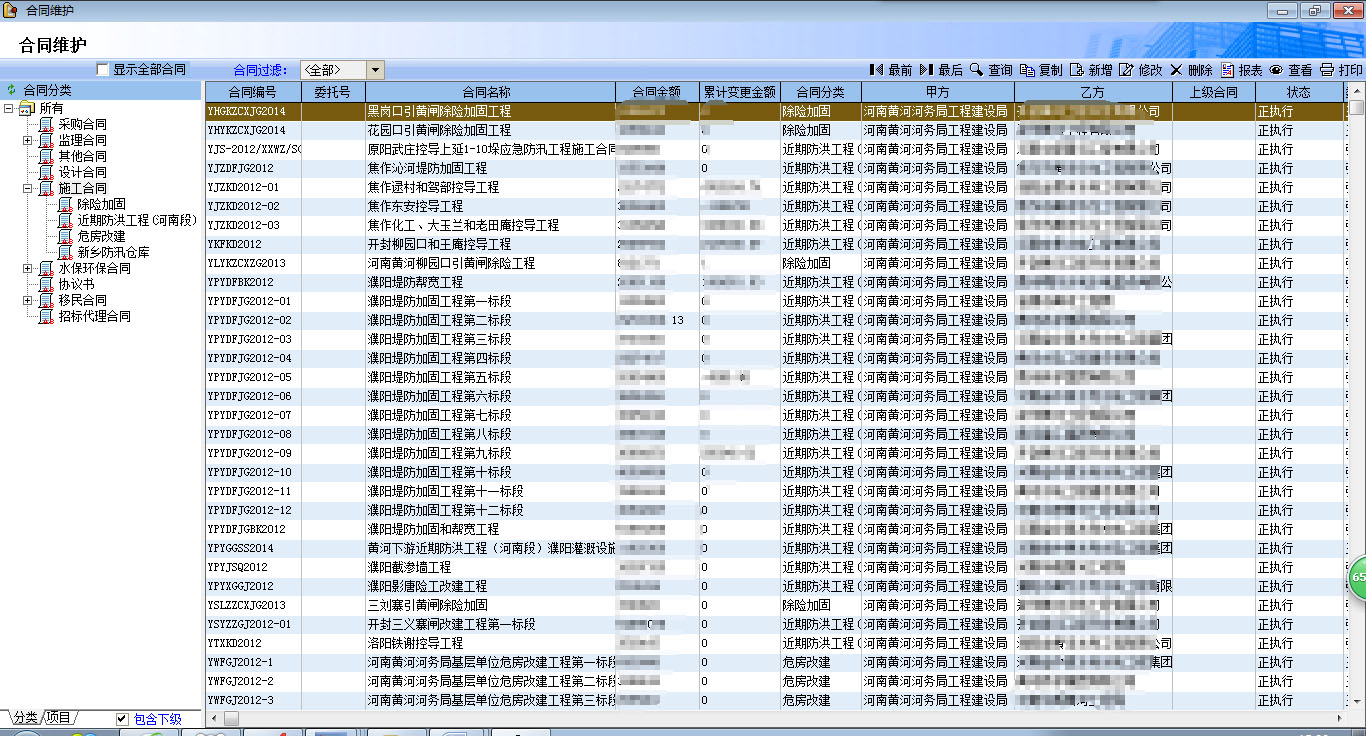 6.1、首先是各種類型合同檔案統(tǒng)一進行管理。主要是采購合同,監(jiān)理合同,設(shè)計合同,施工合同,水保環(huán)保合同,移民合同,協(xié)議書,招標代理合同等。