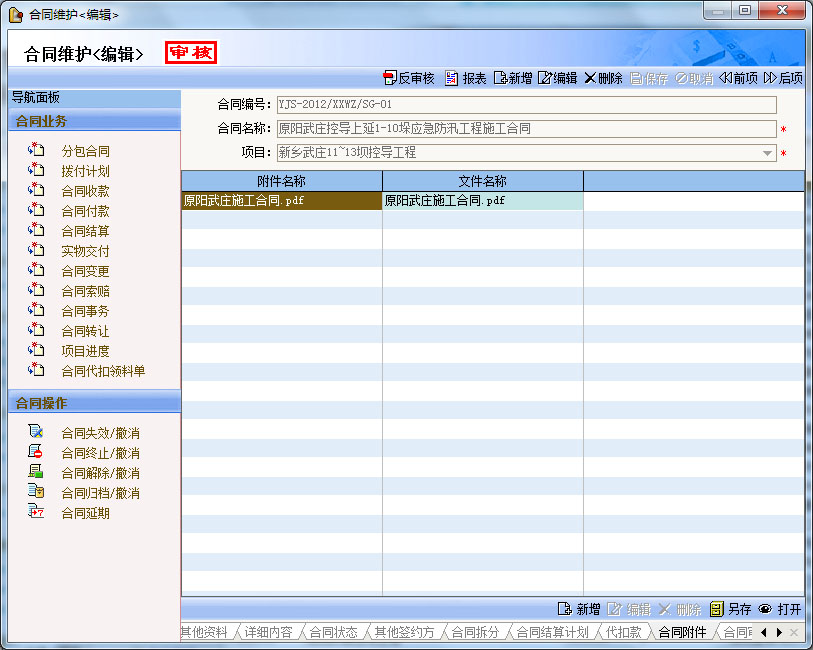 合同管理是整個系統(tǒng)的核心。通過合同模版、擬訂合同、合同登記、合同撥款、合同變更、合同結(jié)算等功能實現(xiàn)合同業(yè)務(wù)的全面管理,十幾種合同報表從不同的角度和層次,動態(tài)反映合同執(zhí)行情況。輔助的發(fā)票登記與核銷、關(guān)聯(lián)資金、成本、采購等系統(tǒng),輕松實現(xiàn)施工合同、采購合同等各類合同的綜合管理。