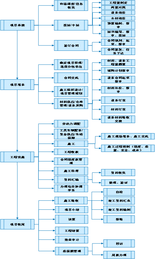 衡誠電力的業(yè)務(wù)是從接到項(xiàng)目商機(jī)開始:項(xiàng)目跟蹤、投標(biāo)——中標(biāo)——簽訂合同——施工組織——設(shè)計、采購——工程實(shí)施——進(jìn)度款收取——電業(yè)協(xié)調(diào)事務(wù)——施工驗(yàn)收——質(zhì)!(xiàng)目圓滿完成。