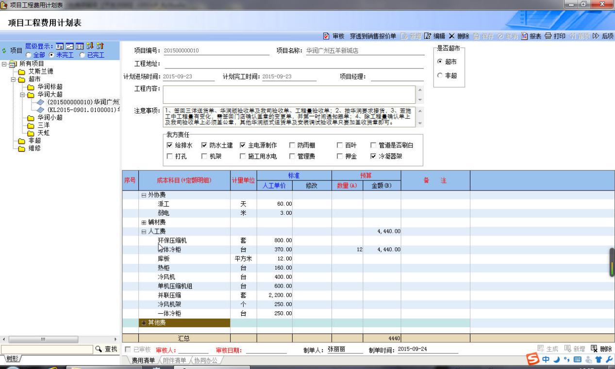 • 項(xiàng)目費(fèi)用定額模板:公司多年管理經(jīng)驗(yàn)的總價(jià),對(duì)每個(gè)設(shè)備的安裝和相關(guān)工序的施工,都有標(biāo)準(zhǔn)的費(fèi)用定額值(公司多年的管理經(jīng)驗(yàn)值,每年都會(huì)定期的調(diào)整的),所以后面所有費(fèi)用的計(jì)劃和實(shí)際金額,項(xiàng)目相關(guān)人員只要報(bào)告相關(guān)的“數(shù)量”,系統(tǒng)自動(dòng)按照定額可以計(jì)算出具體金額,這樣保證錄入數(shù)據(jù)的準(zhǔn)確性和科學(xué)性。